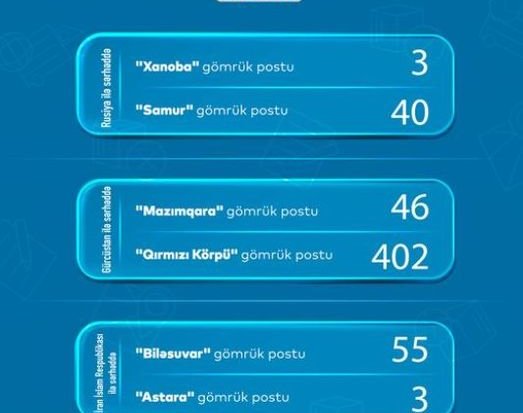 Azərbaycan Yerüstü Nəqliyyat Agentliyindən (AYNA) verilən xəbərə görə, hazırda “Qırmızı Körpü” gömrük postunda 402, “Mazımqara” gömrük postunda 46, “Samur” gömrük postunda 40 və “Xanoba” gömrük postunda üç yük maşını var.