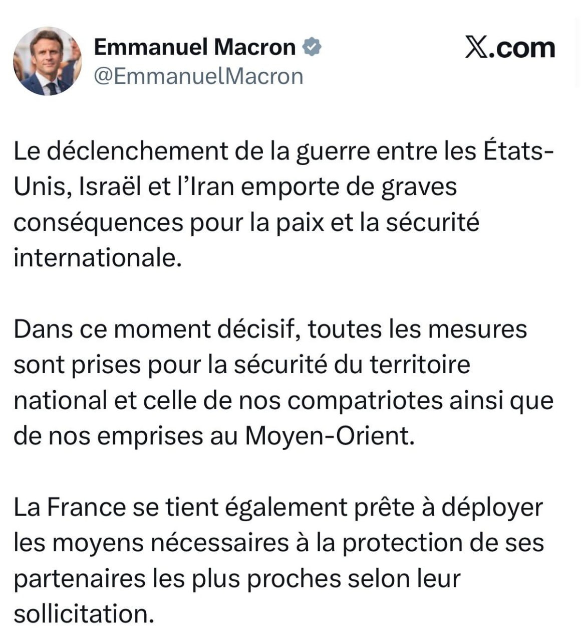 Fransa Prezidenti Emmanuel Makron, ABŞ, İsrail və İran arasında gərginliyin artması ilə əlaqədar olaraq BMT Təhlükəsizlik Şurasının təcili şəkildə toplanmasını tələb edib.