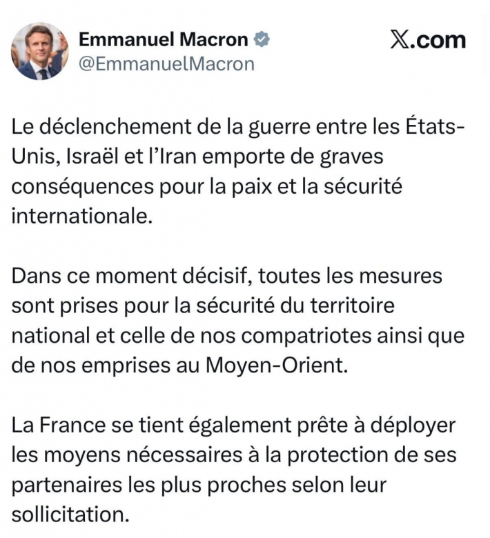 Median.Az xəbər verir ki, Makron bu barədə X hesabında paylaşım edib.