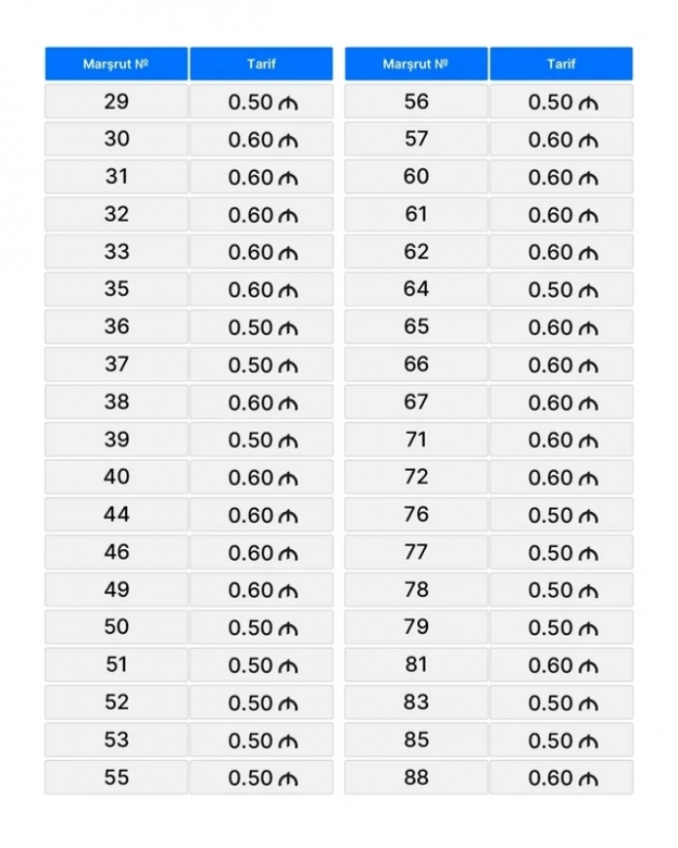 Bakı və paytaxtətrafı avtobuslarda YENİ QİYMƏTLƏR MÜƏYYƏNLƏŞDİ - FOTO
