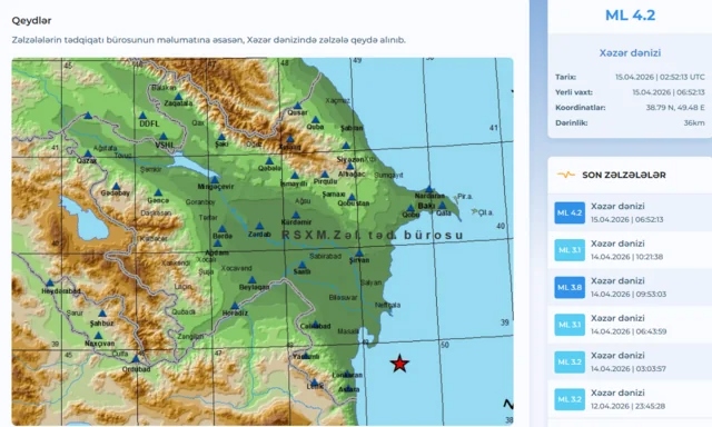 Xəzər dənizində zəlzələ baş verib.