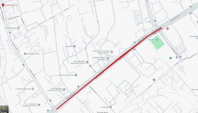 3. основная и второстепенная дороги проспекта Гейдара Алиева (участок между улицами Музаффара Нариманова и Алескера Гаибова, в направлении города).