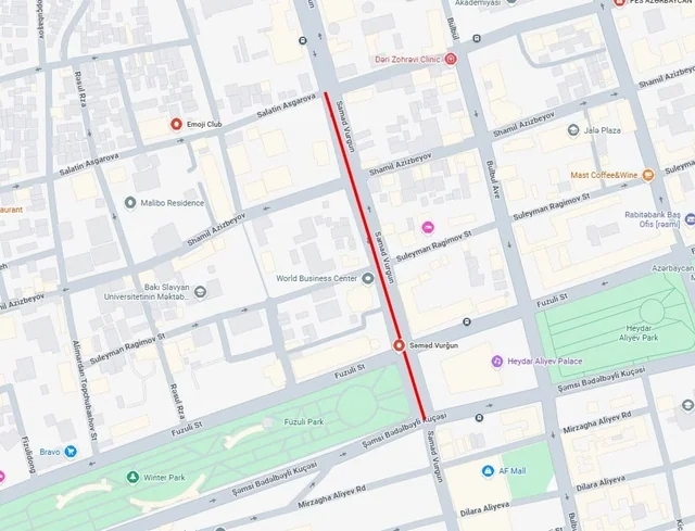 1. улица Самеда Вургуна (участок между улицами Салатын Аскеровой и Физули);