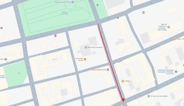 2. улица Рашида Бейбутова (участок между улицами 28 Мая и Шамси Бадалбейли);