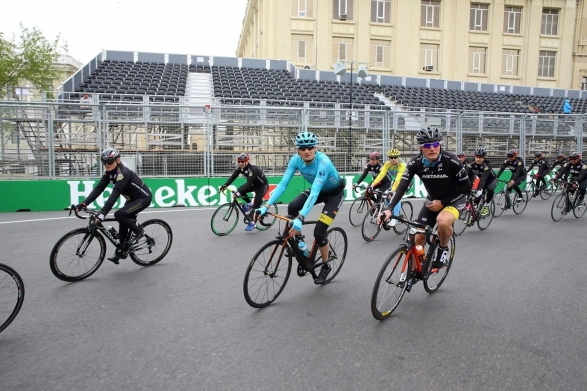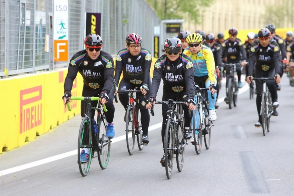 Мадат Гулиев и олимпийские чемпионы на велопробеге в Баку - ФОТО