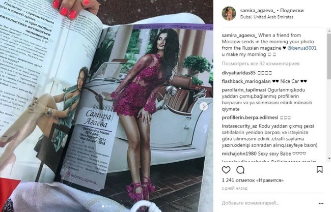 Как стало известно, в фотопроекте приняла участие и азербайджанская модель, проживающая в ОАЭ Самира Агаева. Данную информацию своим подписчикам в соцсети Instagram сообщила сама модель опубликовав снимок страницы журнала на котором красуется ее фотография.
