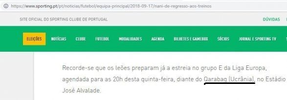 Как передаёт Median.Az со ссылкой на oxu.az, официальный сайт лиссабонского клуба представил «Карабах» как украинский клуб.
