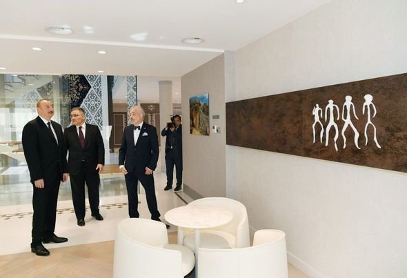 Президент Азербайджана разрезал ленту, символизирующую открытие здания.