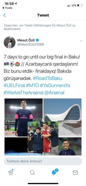 Месут Озил: Братья-азербайджанцы, увидимся в Баку