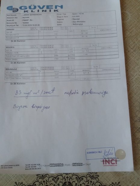 Когда мы увидели девочку, то пришли в ужас – у нее были ужасные отеки, она еле дышала. Оказалось, что у нее – серьезные проблемы с почками, понизилось содержание альбумина в моче. Мы срочно отвезли Ляман в Центральную клиническую больницу и созвали консилиум нефрологов. В настоящее время ей ставят дренаж, чтобы создать отток жидкости в организме. Но для постановки точного диагноза необходимо провести биопсию. Проблема в том, что в Азербайджане такого уровня биопсию не делают – нет специальной головки для микроскопа для проведения этого анализа. А точные анализы результата определяются в течение четырех часов с момента взятия анализа, поэтому есть только один выход – срочно вывозить девочку в Стамбул, в клинику Medical Park.