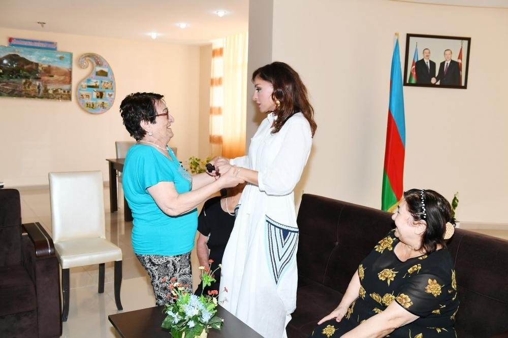 Сначала Первый вице-президент Мехрибан Алиева поинтересовалась условиями жизни людей с ограниченными возможностями здоровья, побеседовала с ними.