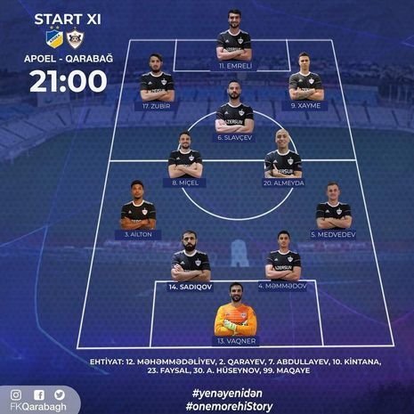 «Карабах» и «АПОЭЛ» назвали составы