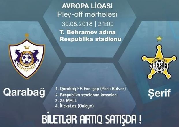 Поступили в продажу билеты на матч Лиги Европы «Карабах» - «Шериф»