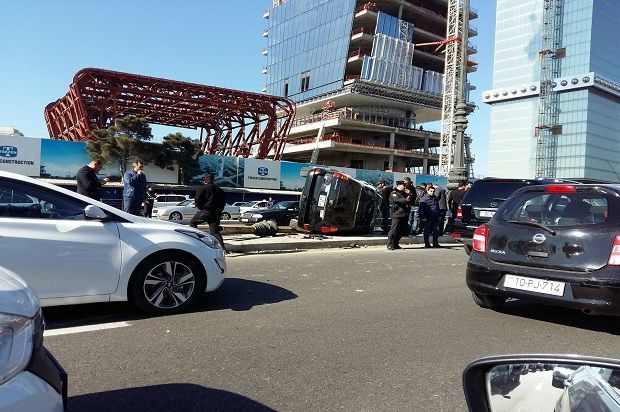 В Баку перевернулся Toyota Prado