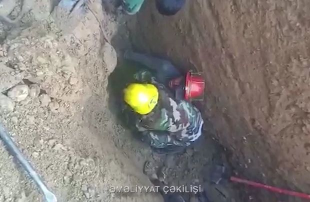 Şəmkirdə torpaq uçqunu altında qalmış şəxslərin xilas edilmə görüntüləri - VİDEO