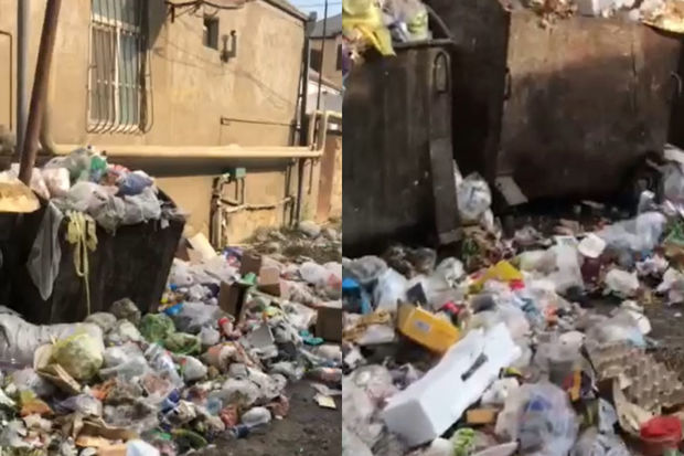 Xırdalanda küçədə məişət tullantılarının qalaqlanması ürəkbulandıran mənzərə yaradıb - VİDEO